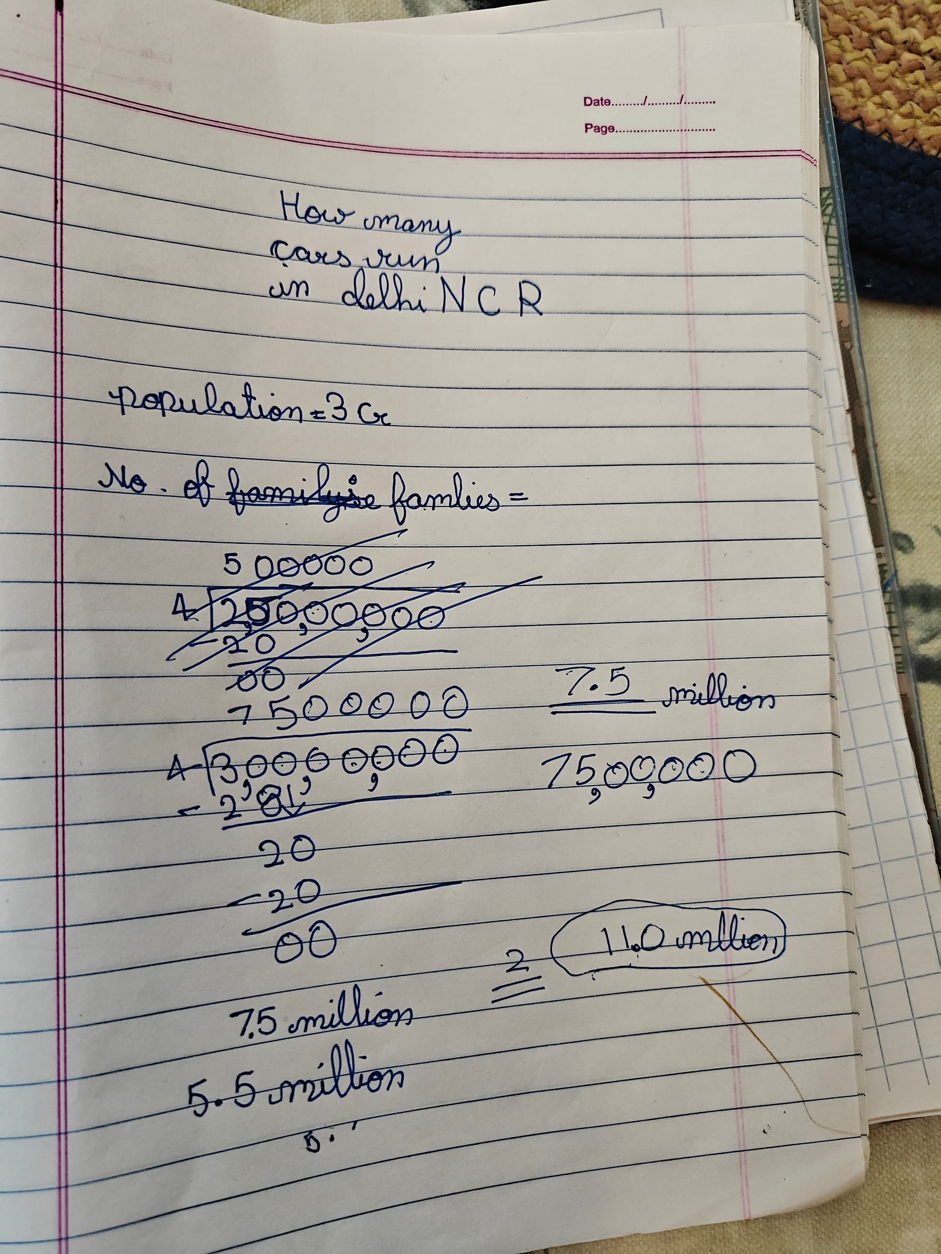 Approximate number of cars daily on Delhi roads.